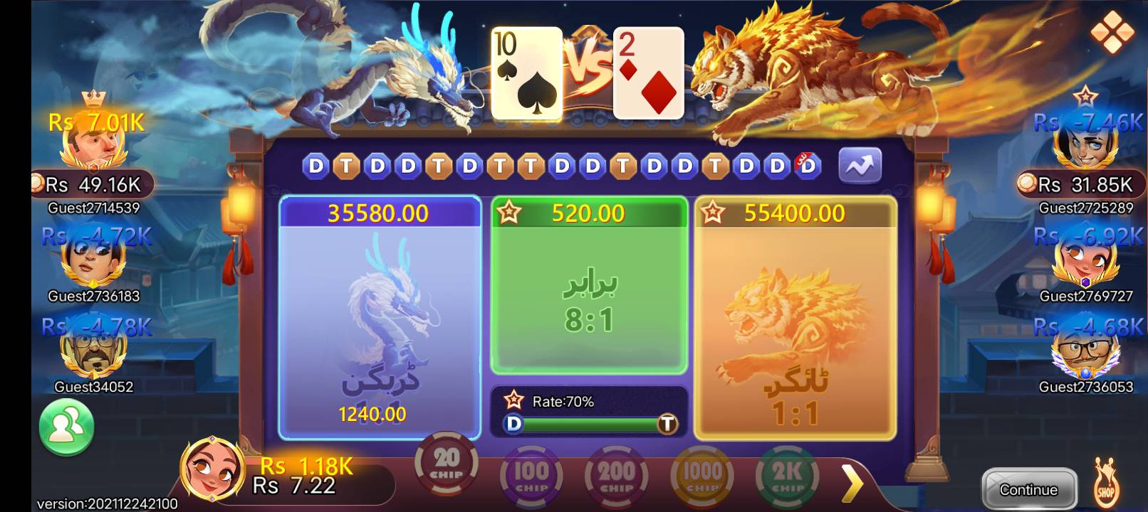 1. Dragon Vs Tiger | 2. Zoo Roulette |