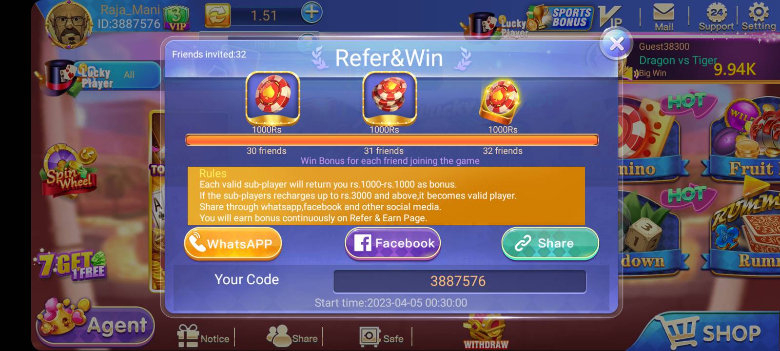 These games give players an exciting and enjoyable experience while also offering the chance to earn real rewards. With its mix of classic and local game options, 3 Patti Room keeps players fully engaged. Along with traditional card games, players can also join popular tournaments such as Dragon vs Tiger, Rummy, and Crush. Each tournament offers fixed rewards, and those who win matches can collect prizes and earn a good amount of money.